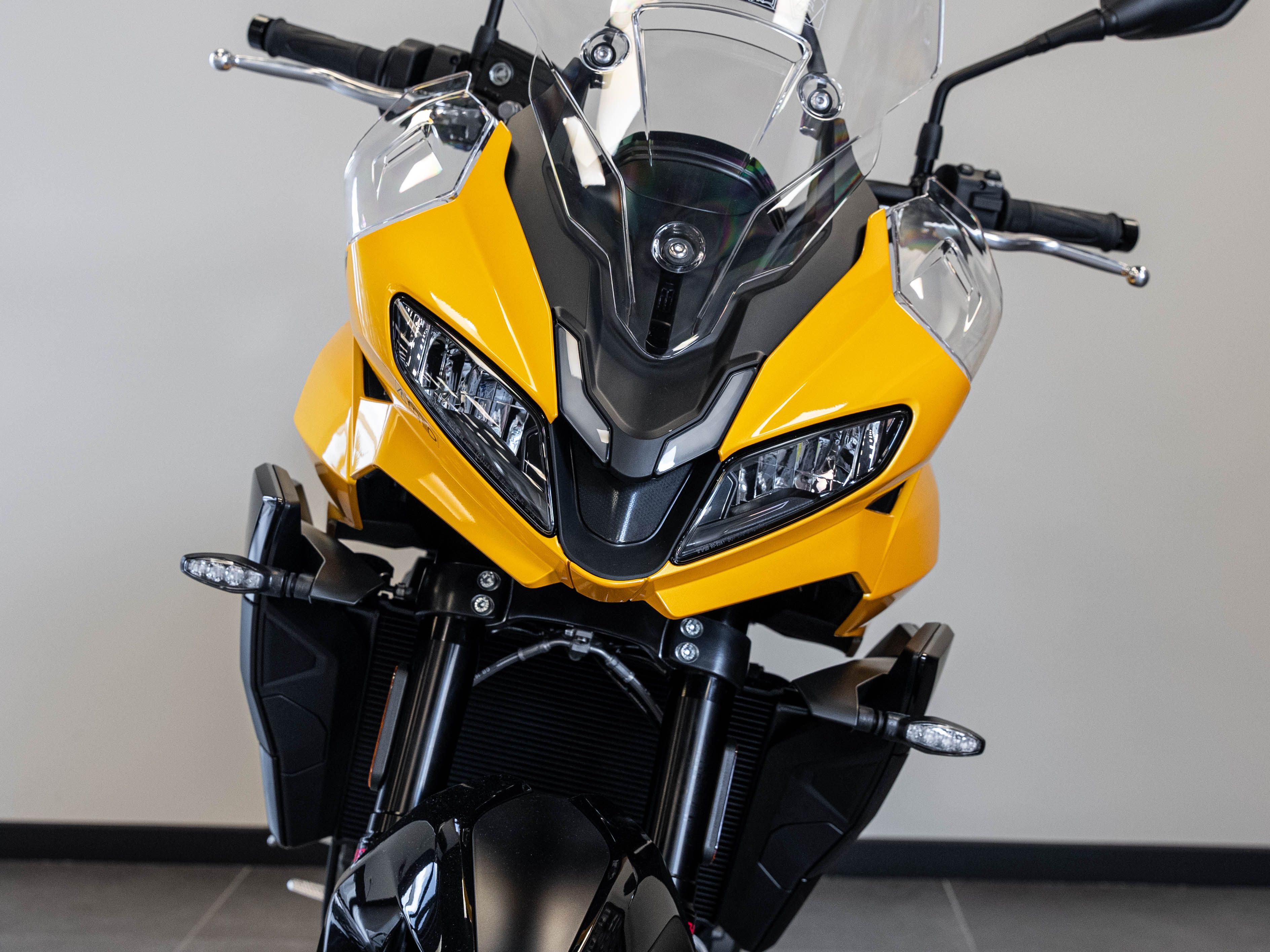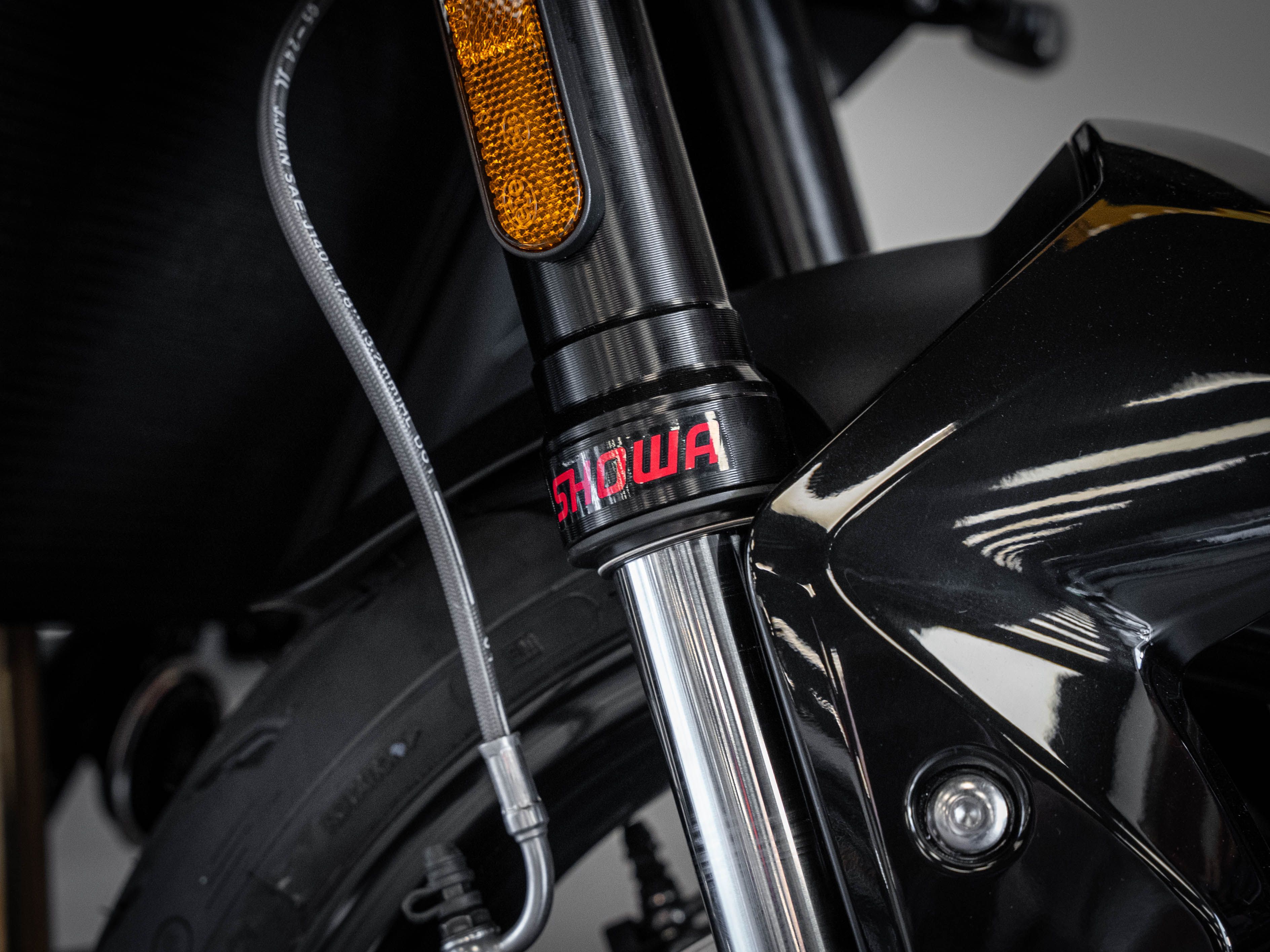 • Suspension avant : Fourche Showa SF-BPF inversée de 41 mm, compression et détente réglables, débattement de 150 mm.